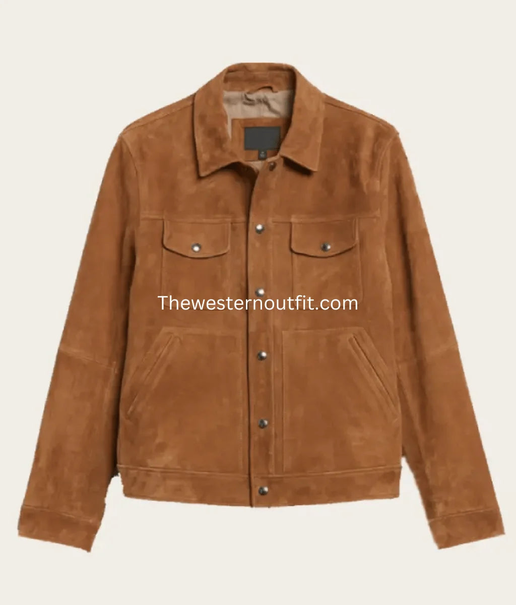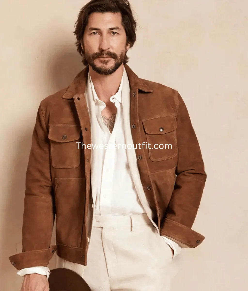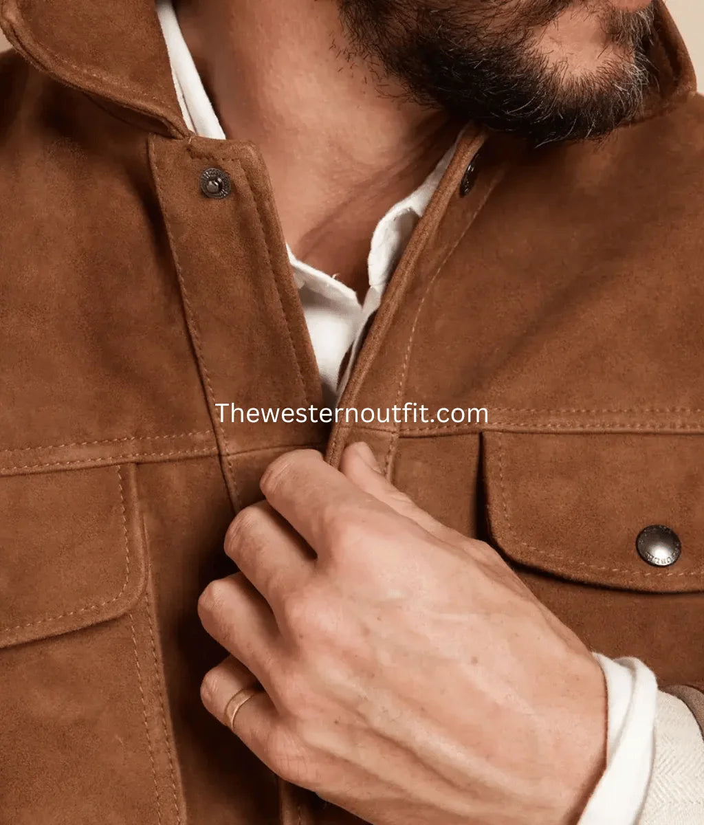 Men’s Suede Leather Cowboy Jacket Brown Western Design